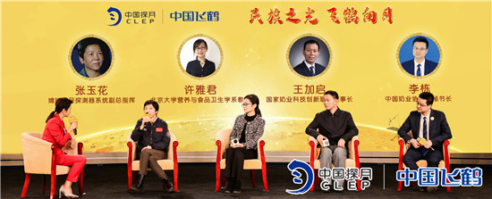 在發(fā)布會圓桌論壇環(huán)節(jié),嫦娥五號副總指揮張玉花,與中國奶業(yè)創(chuàng)新聯盟理事長王加啟、中國奶業(yè)協會副秘書長李棟、北京大學營養(yǎng)與食品衛(wèi)生學系教授許雅君一起,共同探討了飛鶴星飛帆成功實現登月搭載的深層原因,傳遞了對飛鶴持續(xù)科研攻堅的期待。