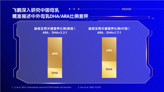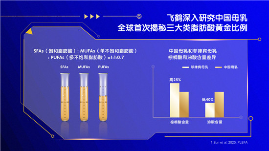 現場,飛鶴首席科學家、研發(fā)負責人蔣士龍介紹道,通過對中國母乳的持續(xù)研究,2020年1月,飛鶴在國際兒科權威雜志JPGN上發(fā)表了針對中國母乳蛋白質和氨基酸的系統(tǒng)綜述,這是首篇被納入國內外研究的成果,揭示了18種氨基酸在9個母乳階段的動態(tài)變化;10月,在國際脂肪酸研究學會官方雜志上發(fā)表研究成果,首次通過系統(tǒng)綜述,研究中國不同地區(qū)之間母乳42種脂肪酸含量的特點,發(fā)現中國母乳三大類脂肪酸關鍵比例為1: 1: 0.7, 并更加精準地描述了腦部發(fā)育重要營養(yǎng)物質DHA/ARA的比例為1: 1.69;12月,飛鶴又在食品營養(yǎng)領域專業(yè)雜志上發(fā)表成果,在蛋白質研究成果的基礎上,揭示了中國母乳中11種活性蛋白成分在6個母乳階段的變化,其中包括乳鐵蛋白、α-乳白蛋白等關鍵營養(yǎng)成分。