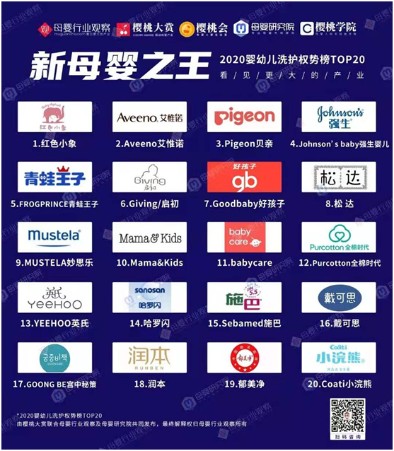 ?。笅胄袠I(yè)觀察:2020嬰幼兒洗護(hù)權(quán)勢(shì)榜20強(qiáng))