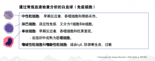 眾所周知,我們?nèi)矶荚诿庖呦到y(tǒng)的監(jiān)督之下。包括胸腺、脾臟、淋巴結(jié)和骨髓等等在內(nèi)的免疫系統(tǒng),是身體的一套防御系統(tǒng)。它雖然看起來不如心臟或肝臟這樣的器官來得有形,但作用卻是至關(guān)重要。免疫系統(tǒng)通過消耗巨大的資源,產(chǎn)生大量的免疫細(xì)胞,并依靠這些細(xì)胞成功地發(fā)揮作用。通過常規(guī)血液檢查分析的白血球(免疫細(xì)胞),有中性粒細(xì)胞、淋巴細(xì)胞、單核細(xì)胞、嗜堿性粒細(xì)胞和嗜酸性粒細(xì)胞,等等,它們將在身體內(nèi)各司其職,形成抵御外敵入侵的盾牌,并在第一時間發(fā)出預(yù)警。