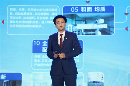 伴隨著中糧旗艦工廠生產(chǎn)福臨門寶寶?蔬優(yōu)營養(yǎng)面的現(xiàn)場(chǎng)鏡頭,中糧糧谷面條管理部研發(fā)負(fù)責(zé)人張智勇先生做了以“家國好面,盡在中糧”為主題的中糧福臨門寶寶?蔬優(yōu)營養(yǎng)面新品推介,全面介紹了產(chǎn)品的開發(fā)初衷和特點(diǎn)。此次推出的福臨門寶寶?蔬優(yōu)營養(yǎng)面,中糧糧谷與中糧營養(yǎng)健康研究院通力合作,根據(jù)6至36個(gè)月嬰幼兒生長(zhǎng)需要,選擇合理的營養(yǎng)素載體,設(shè)計(jì)科學(xué)的含量,并通過多次衰減實(shí)驗(yàn)驗(yàn)證,搭配營養(yǎng)劑配方,助力寶寶成長(zhǎng)。由中糧自有旗艦工廠按照國家標(biāo)準(zhǔn)GB 10769進(jìn)行全鏈生產(chǎn),嚴(yán)控生產(chǎn)管理,確保安全可追溯。產(chǎn)品麥源精選自澳洲小麥黃金產(chǎn)區(qū),采用日本制面技術(shù)和制面工藝,科學(xué)研發(fā)寶寶蔬優(yōu)營養(yǎng)無鹽蔬菜配方,口感軟糯適宜寶寶咀嚼和消化,滿足寶寶成長(zhǎng)所需營養(yǎng)。首批上市的4款蔬菜面新品,外包裝特采用自封口設(shè)計(jì),內(nèi)含6個(gè)獨(dú)立小包裝,搭配6份營養(yǎng)伴侶,定量分裝、合理搭配,防塵防潮,安全衛(wèi)生,方便攜帶,滿足各場(chǎng)景所需。