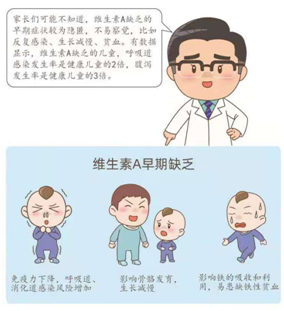 但就像補充指導(dǎo)漫畫里一樣,很多媽媽被看不見的“隱性饑餓”蒙蔽,覺得自家寶寶飲食沒有問題,看著也挺健康,營養(yǎng)狀況應(yīng)當(dāng)是“鐵桶一塊”,卻忽視了微量營養(yǎng)素這一短板,其中就包括了維生素A和D。缺乏維生素AD給寶寶身體帶來的不良影響是循序漸進的,早期癥狀并不明顯,所以不易被察覺,危害絕不可小覷,如下圖所示: