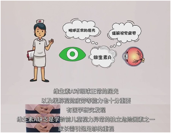 維生素A在人體內(nèi)以視黃醇的活性形式與視蛋白相結(jié)合,形成視桿細胞中的感光物質(zhì)“視紫紅質(zhì)”,起到感受暗光的作用。維生素A還是維持眼角膜、結(jié)膜上皮細胞結(jié)構(gòu)完整和功能健全的重要物質(zhì),能夠增強抵抗病毒、細菌傷害的能力,減少眼部感染。最重要的是,維生素A能維持淚腺管上皮細胞的完整性,使淚腺能夠正常分泌淚液,在緩解視疲勞的同時,還可維持淚膜的結(jié)構(gòu)完整,是預(yù)防近視的重要因素。