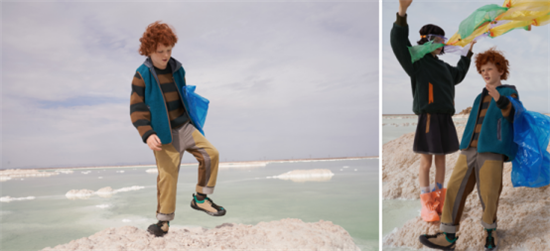 海水是無色透明的,但不同的海洋又都有各自斑斕的色彩,它們來自陽光的反射和海中生物的顏色。“純凈海洋”系列采用大面積亮色色塊碰撞設(shè)計(jì),看似跳躍無序的色彩,拼接起來卻兼具時(shí)髦感與運(yùn)動(dòng)范,恰如活潑雀躍的少年們,時(shí)而潛入西西里的深海,時(shí)而遨游大堡礁…細(xì)節(jié)之處,別具創(chuàng)意地運(yùn)用不同面料的巧妙拼接,盡顯少年的鬼馬靈動(dòng)。更裝飾有海洋生物圖案,賦予少年前往海洋探秘的“通行暗號”。